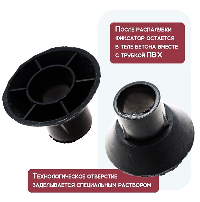 Применяется в комплекте с Трубой ПВХ для опалубки в количестве 2-х штук на одну трубку.